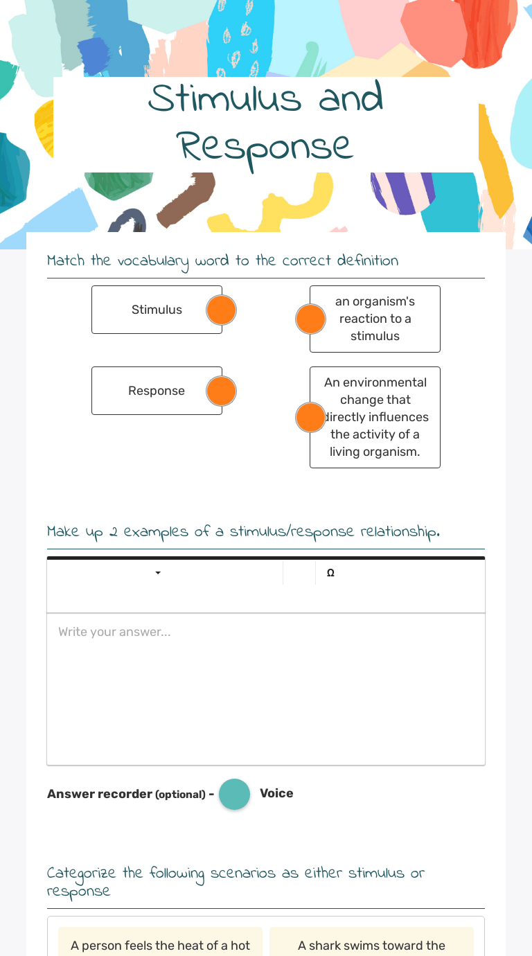 Worksheet so they know what questions need to be answered before they . Navigation menu classical conditioning is a form of learning whereby a conditioned stimulus becomes associated . Use the following investigation to answer the next four questions. Modify with your own questions and. The sound of a ringing phone is an external stimulus that may prompt you to answer . Allow about 5 minutes or until there are no more answers. In 1779, charles bonnet placed bean seedlings in a vase of water inside a closed, dark box. Stimuli, response, and behavior worksheet page 1 part 1: Fill in the following blanks. For example, hunger is an internal stimulus that may prompt you to eat. Answer the following questions about the process of classical conditioning. What is the natural response to each stimulus . From animal stimulus and response worksheets to elementary stimulus response videos, .